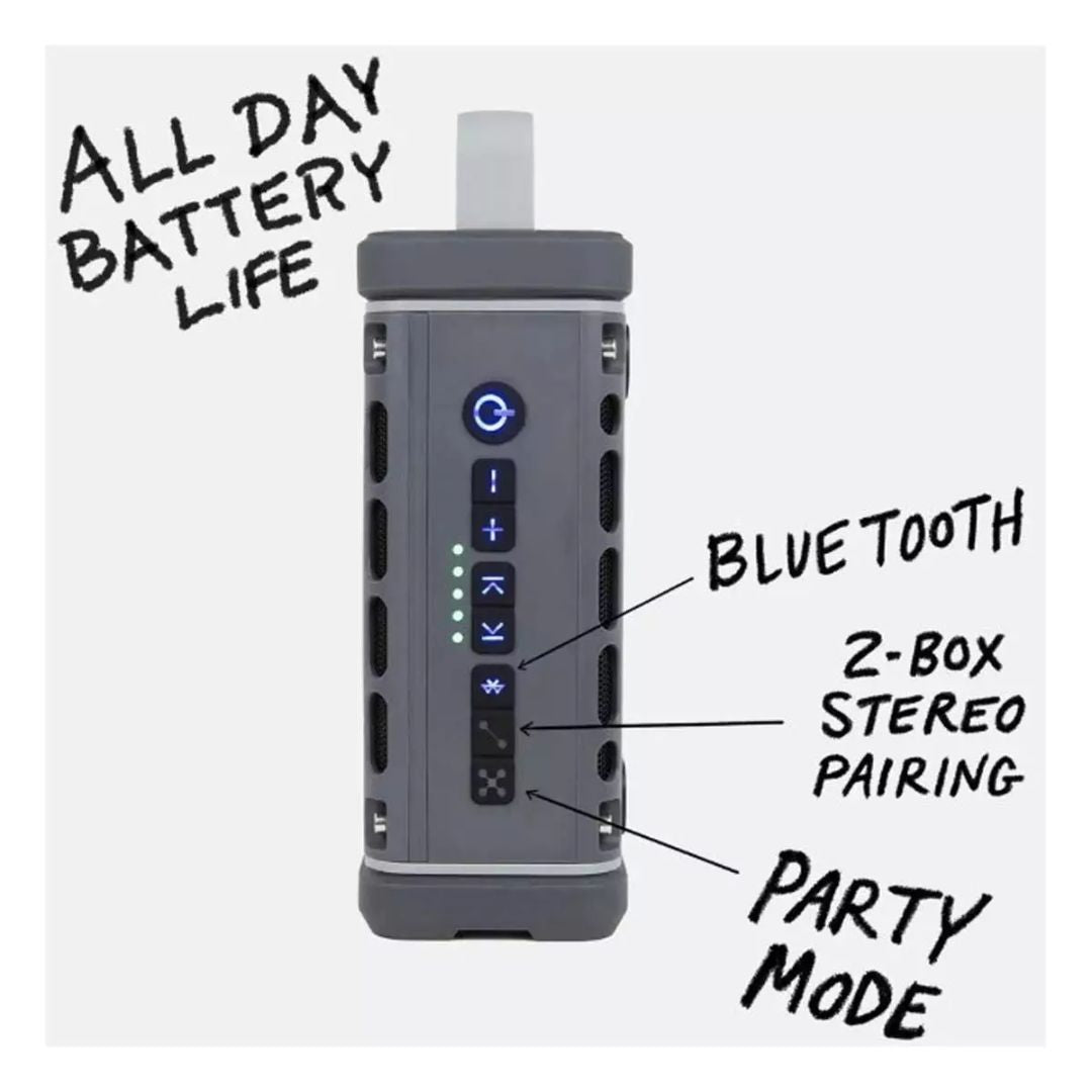 The TURTLEBOX Ranger Portable Waterproof Speaker delivers powerful, premium sound in an ultra-portable and exceptionally rugged design, built to thrive in any outdoor environment. Engineered to withstand the elements, its 100% drop, crush, and dust-proof construction provides unmatched durability, making it the perfect companion for your toughest adventures. With an all-day battery life and versatile pairing options including Party Mode for infinite speaker connections, the Ranger ensures your soundtrack never stops.
