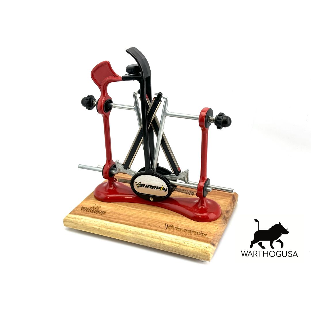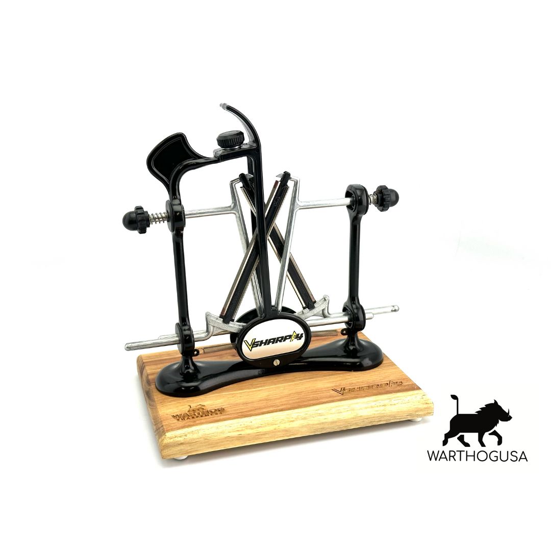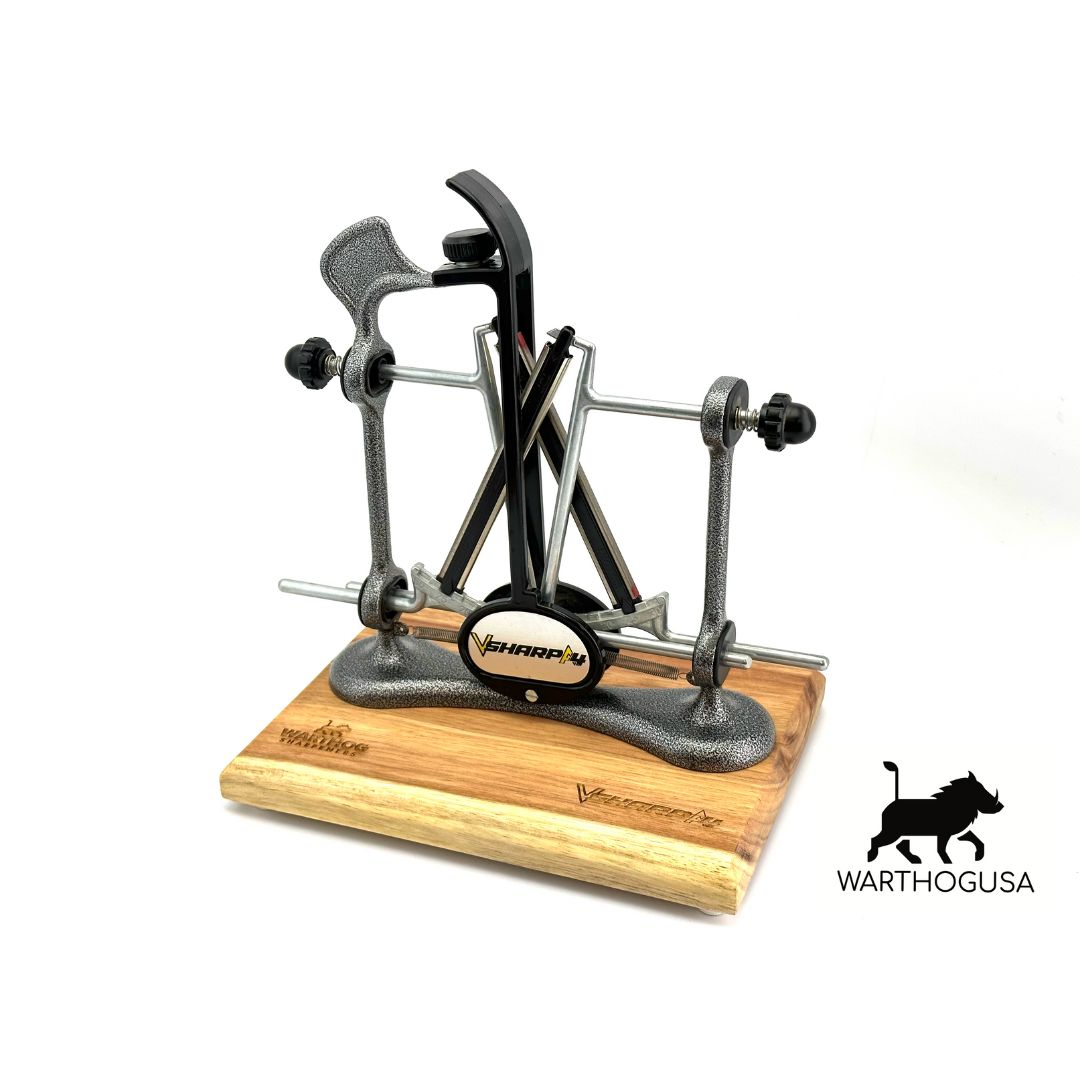 Everyone has experienced the problems caused by using dull knives. The all-new ELITE A4 is your solution. It is the bestselling A4 model with the addition of a deluxe wooden base to make sharpening even easier! It uses two high quality, 325 grit diamond hones that sharpen both sides of the blade simultaneously. The A4 uses the patented V-Sharp system with angle settings of 15-,20-,25- and 30-degrees to sharpen virtually any knife. It is the perfect diamond knife sharpener for home use, chefs, fishermen, and hunters. Use with our ceramic hones to sharpen serrated blades with ease! The A4 knife sharpener is easy to use, fast, and accurate. Using Warthog Sharpeners, almost anyone can sharpen a dull knife.